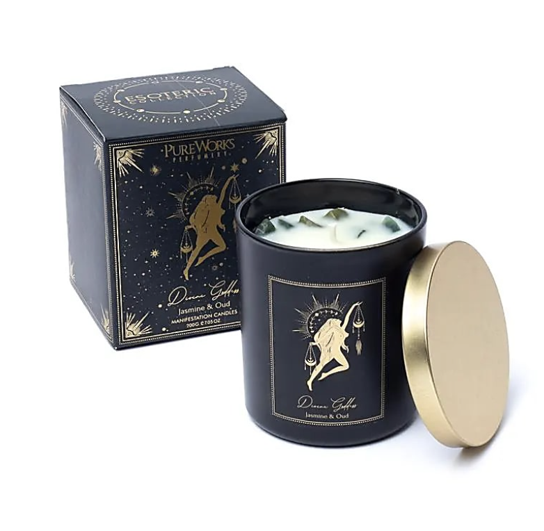 Diese handgegossene Manifestationskerze mit anregendem Jasmin- und Oudh-Duft hilft dir, starke Grenzen zu setzen und dich gleichzeitig tief mit deiner kreativen, intuitiven und göttlich-weiblichen Energie zu verbinden. Die Xinji Jade, eingebettet in das hochwertige Soja- und Palmwachs, unterstützt dich dabei, dein volles Potenzial zu entfalten.